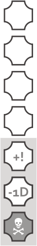 - Death’s Door (☠): The Hero will die at the end of the scene unless stabilised.